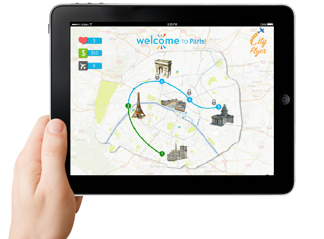 | The challenge: | To design user interface and flow for CityFlyer game for iPad and other tablets |